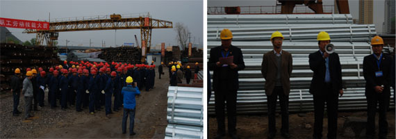 為落實(shí)集團(tuán)總公司《2014年安全生產(chǎn)工作要點(diǎn)》,豐富物產(chǎn)配送公司基層班組建設(shè),促進(jìn)一線職工綜合技能水平提升,以《吊裝作業(yè)規(guī)范手勢(shì)》為標(biāo)準(zhǔn),檢驗(yàn)公司一線司吊作業(yè)人員執(zhí)行國(guó)家規(guī)范手勢(shì)、司吊作業(yè)操作規(guī)程的實(shí)際效果,保證全年安全控制目標(biāo)的實(shí)現(xiàn)。物產(chǎn)配送公司在前期宣傳動(dòng)員、學(xué)習(xí)培訓(xùn)、實(shí)戰(zhàn)演練的基礎(chǔ)上,于2014年5月17日上午,舉行職工勞動(dòng)技能比武大賽。集團(tuán)總公司黨委書記白家林、集團(tuán)黨群工作部部長(zhǎng)趙宗青、安全環(huán)保部干事劉軍蒞臨現(xiàn)場(chǎng)指導(dǎo)。